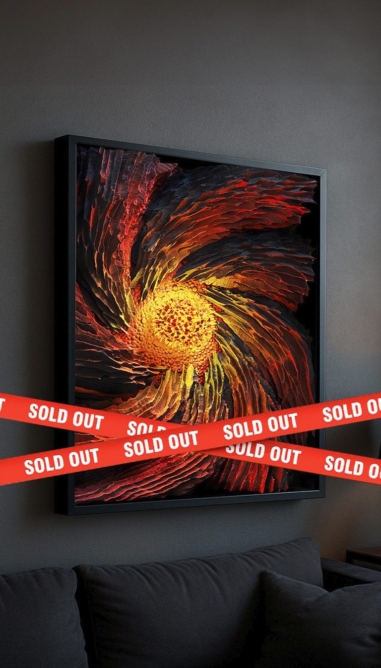 The depth here is physical, not illusory. Spherical forms emerge from within, governed by an unknown logic, creating a sense of motion, rhythm, and inner life. As light interacts with the surface, the artwork continuously transforms - it never appears the same twice.
